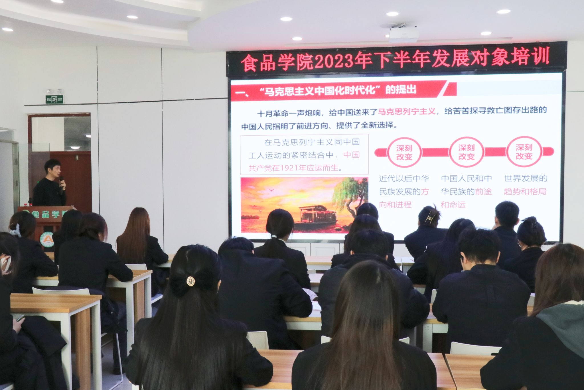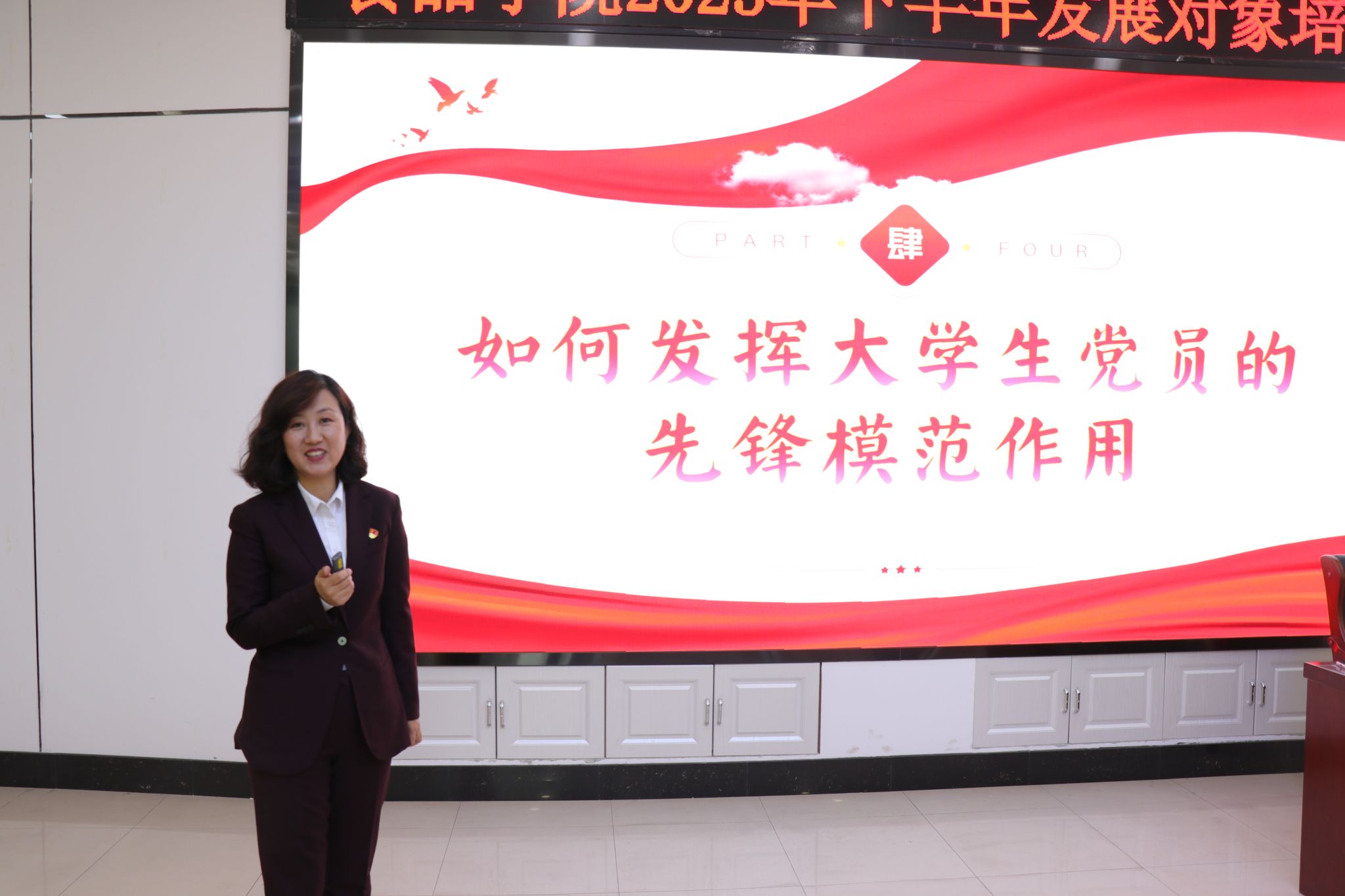 侯坤以《担民族复兴历史使命 做德法兼修时代新人》为题,号召广大党员发展对象要牢固树立“建设中国特色社会主义法治体系、建设社会主义法治国家”的远大理想,培养内心的法治信仰,德法兼修、脚踏实地、勇往直前、拼搏进取。何鎏以《以大历史观探究马克思主义中国化时代化的历史溯源》为题,强调学习马克思主义中国化时代化更应该看到其提出的背景后所蕴含的哲学思想,应加强广大党员发展对象的党性修养,牢记初心,为实现中华民族伟大复兴注入磅礴力量。钱芳以《老员工党员要做有理想有本领有担当的青年先锋》为题,从端正入党动机、如何成为一名合格的共产党员等三方面内容展开,为党员发展对象应该在哪些方面发挥先进性和模范带头作用提出了具体建议。崔丽以《以信仰之光照亮前行之路》为题,分享了在省委党校专题培训班的学习体会,并从如何理解信仰、在理论学习中筑牢信仰之基、青年要做有信仰的奋斗者三方面引导激励同学们坚定如磐信念,锤炼过硬本领,不负韶华,奋斗向前。金靖博以《继承和弘扬中国共产党人精神谱系》为题,讲授面对当今风雨变幻的世界局势,当代青年必须跟紧时代潮流,不断积极进取,发扬中国革命精神的优良传统,为祖国未来做出更大贡献。赵旭明以《严格执行<黑龙江省普通高等学校发展党员工作规程(试行)>,切实提高发展党员工作质量》为题,强调发展党员工作是一项事关党的事业兴衰成败的大事,是关系到党的战斗力和生命力的重大问题,要从战略和全局的高度,充分认识到做好新形势下高校发展党员工作的重大意义。