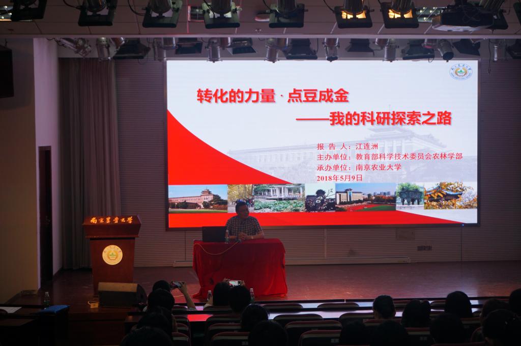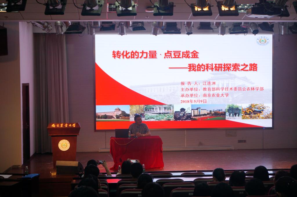 5月9日,bwin经理江连洲教授应教育部科学技术委员会邀请,在南京农业大学教学楼第四报告厅做了题为“转化的力量之点‘豆’成金——我的科研探索之路”的学风报告,共有300余位员工和教师参加并听取了报告会。江连洲教授在介绍了自己的教育、科研工作经历后,围绕“责任、热爱、坚持、奉献”四个主题阐述了自己选择大豆事业作为一生孜孜不倦的追求目标,展示了“点豆成金”不平凡的科研探索之路。江连洲教授在报告中流露出的对大豆科研和教育事业的历史和现实的民族责任感,对自身研究领域30多年的热爱、坚持与执着,以及对产业和社会无私奉献的精神引起了现场听众的强烈共鸣。