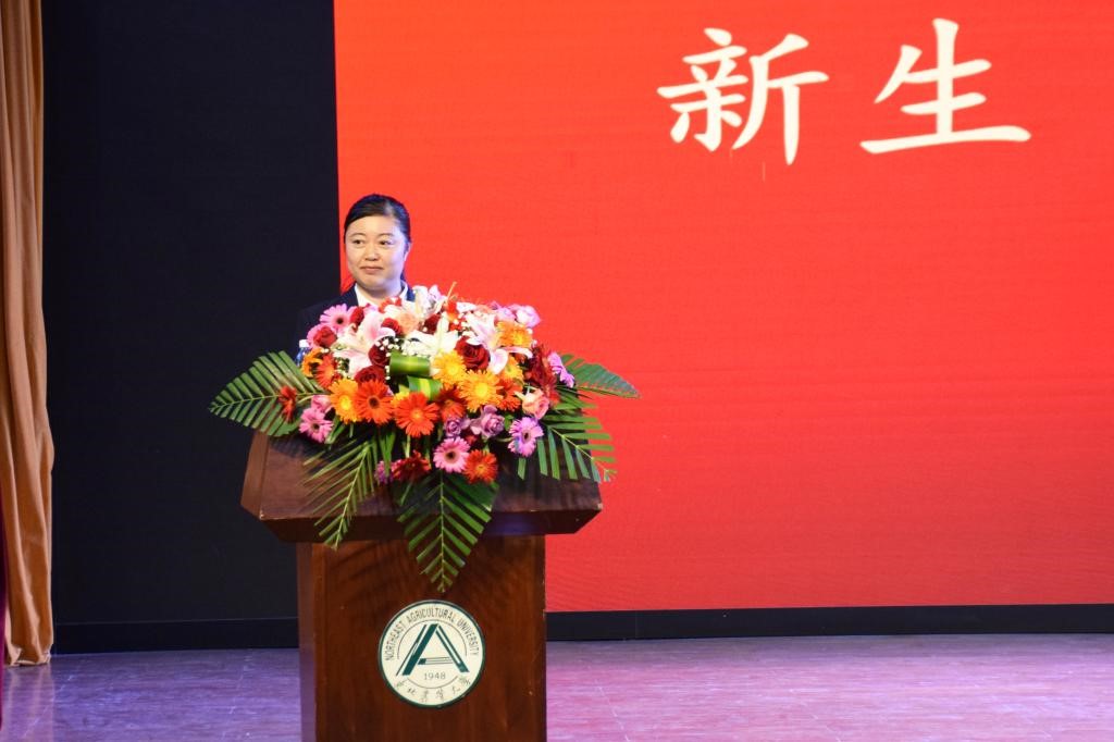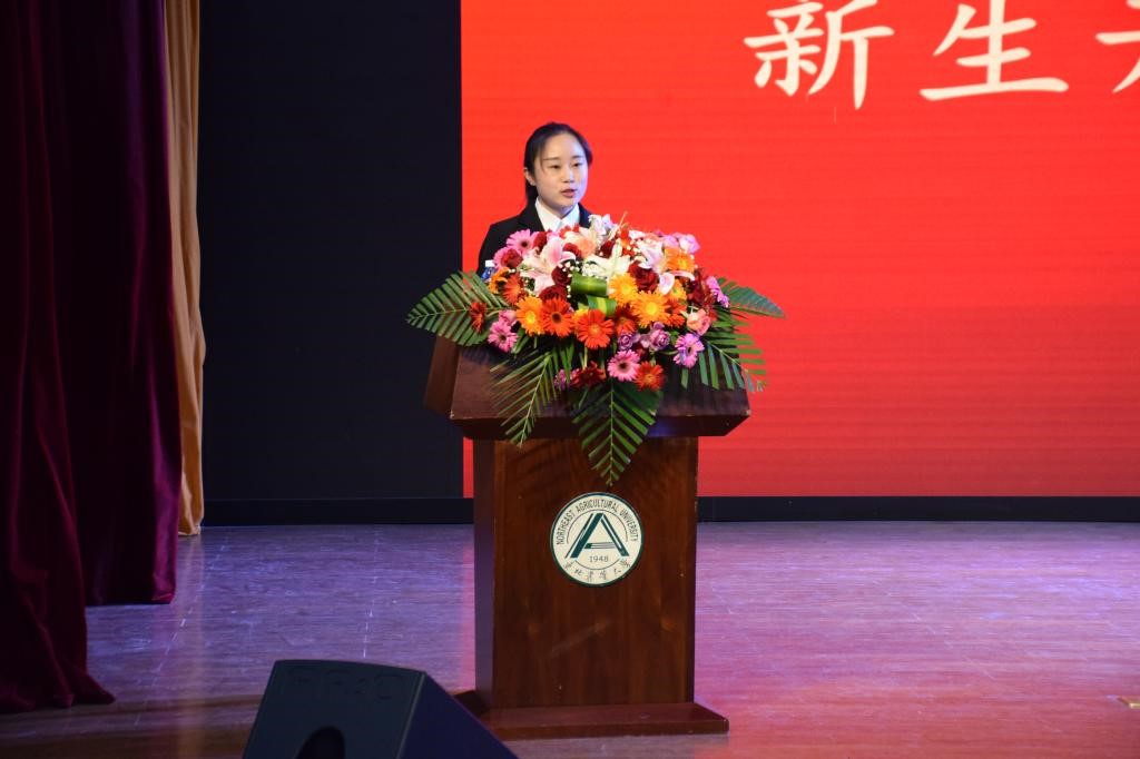 2015级本科生、国家奖学金获得者祁新华同学的发言,凝聚了所有老生对新同学的真心祝福。她说:“在大学,‘学’是根本,作为一名员工‘学习’是永恒的使命。勤能补拙,努力终会有回报;要勇于实践、学以致用;要不忘初心,砥砺前行”。祁新华还表达了对学校和学院的感恩与祝福。