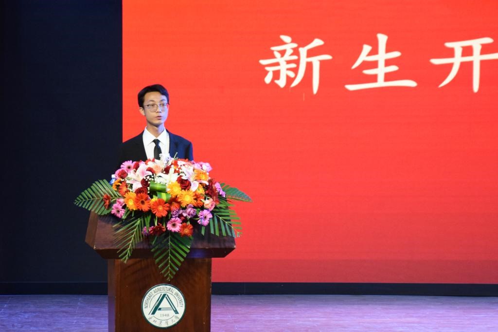 新生代表2018级本硕博理科实验班梁言同学,代表全体新生向学校、老师承诺:要努力学习科学文化知识,用正确的思想引领老员工活,注重能力锻炼,严格遵守校规校纪,弘扬科学精神,做勤奋好学的好员工。