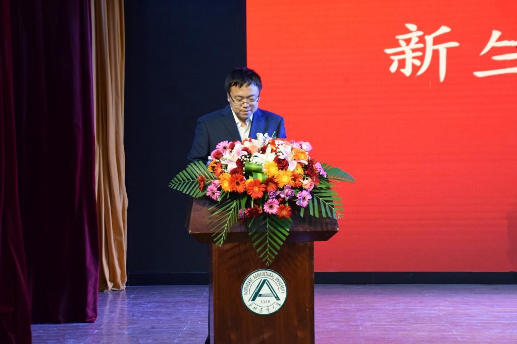 9月11日晚,2018级新生开学典礼暨迎新晚会在图书馆一楼报告厅举行。公司党委书记张显伟、经理江连洲、党委副书记潘俊波,副经理刁铁军、李晓东、侯俊财,国家乳业技术研究中心副主任姜毓君、食品质量与安全系主任王喜波、粮食工程系主任李良、全体辅导员及2018级全体本硕博新生参加了大会。开学典礼由学院学工办主任王丽萍主持。