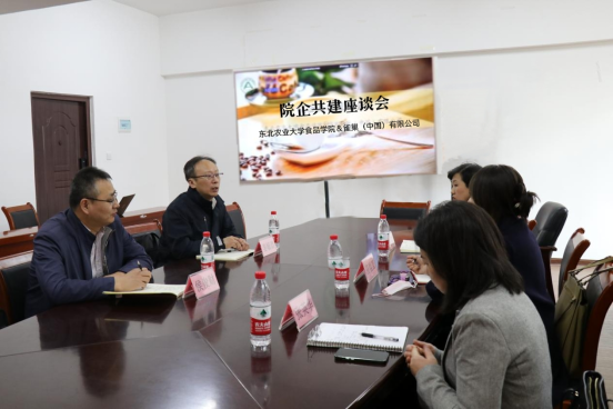 骆盟盟介绍了雀巢公司的总体情况,重点围绕公司业务、行业地位、核心竞争力及发展目标等方面作了总体介绍。与会人员分别围绕科学研究、人才培养、员工实习实训及创新竞赛合作等内容进行了深入交流并达成共识。
