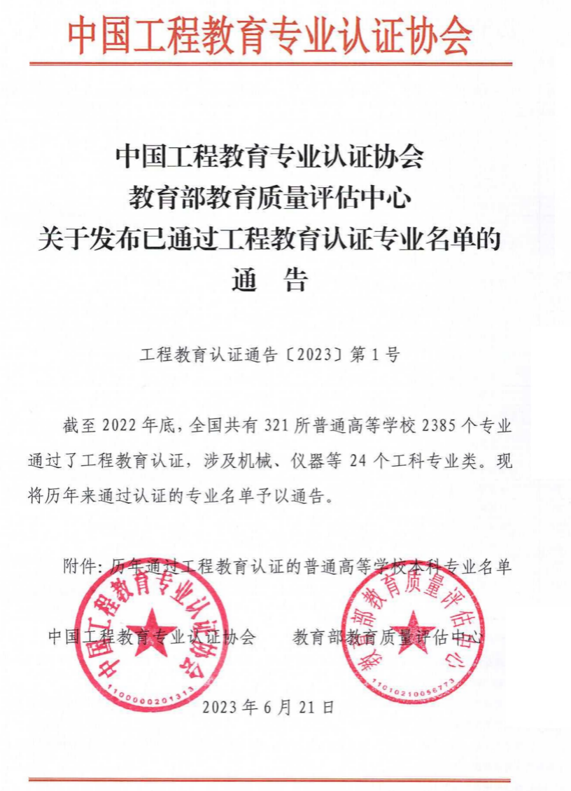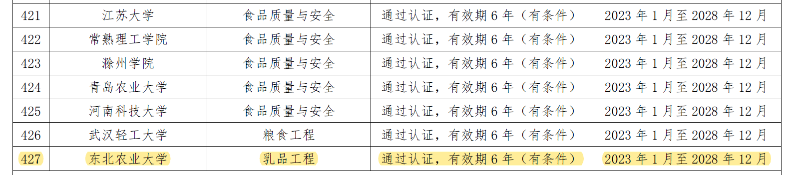 6月29日中国工程教育专业认证协会、教育部教育质量评估中心下发《关于发布已通过工程教育认证专业名单的通告》(工程教育认证通告〔2023〕第1号),公司乳品工程专业顺利通过工程教育认证,认证有效期6年。