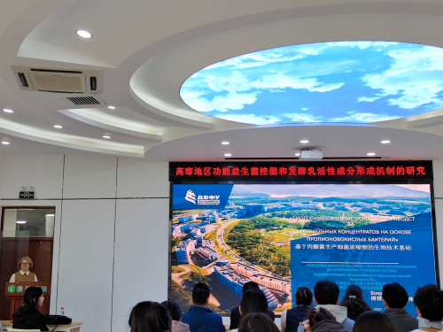 公司经理姜毓君教授在交流会上致欢迎词,项目负责人李春教授主持会议。会上,外方专家向公司师生展示了远东地区生态原料的生物活性物质及其在食品工艺中的应用以及蒙古国传统乳制品的研究成果,使学院师生对俄罗斯、蒙古国传统乳制品现状增进了解,并对国际新型食品研究的发展趋势有了更加清晰的认识。