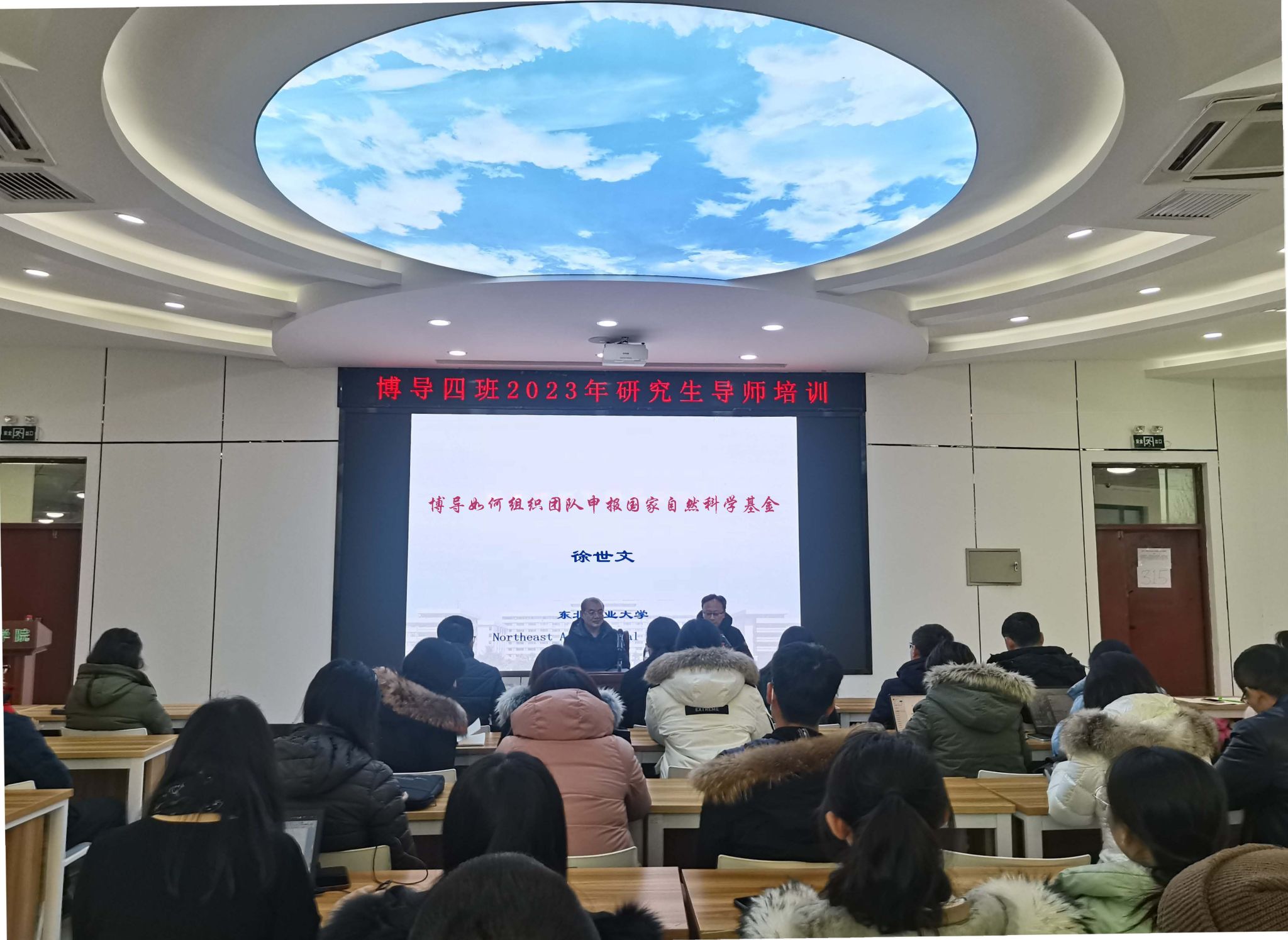 为进一步贯彻落实学校《关于开展“两个队伍”一体化培训暨2023年研究生导师培训工作的通知》有关精神,切实提高研究生导师学术管理能力,11月27日下午,公司牵头并针对由生命科学、食品、文理三个学院的博士生导师组成的博导四班全体人员特点,邀请动医学院徐世文教授以《博导如何组织团队申报国家自然科学基金》为题进行专题培训。培训由公司经理姜毓君主持。