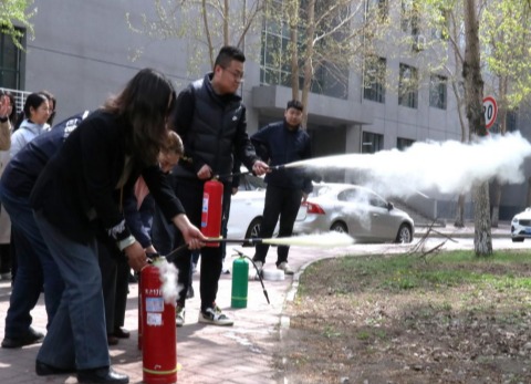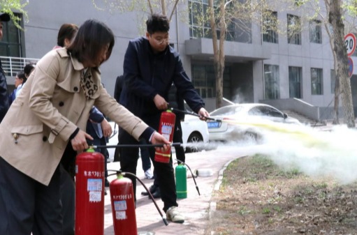 4月29日上午,随着消防警报声响起,消防灭火和应急疏散演练活动正式开始,办公楼内全体教职工及员工在疏散引导组的引导下,分别从楼宇内三个安全出口有序向楼外安全区域疏散撤离。随后,保卫处消防科技术人员为参加活动的教职工演示讲解了灭火器、消防水带的具体使用方法和注意事项,介绍了遇到险情时逃生知识和技巧。在技术人员的指导下,公司教职工纷纷拿起灭火器进行实操演练。副经理刁铁军就进一步提升防火意识、增强安全观念提出了明确要求。